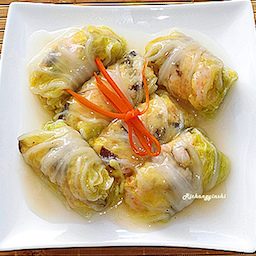 Đây cũng là một món hấp khá ngon miệng và dễ thực hiện, nguyên liệu chính gồm tôm, hải sâm và sò điệp được cuốn trong những lá cải thảo xinh xắn và dễ thương.