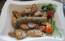 Nem được xem như là món ăn đặc trưng của văn hóa ẩm thực Việt Nam. Tuy nhiên thay cho các món nem thông thường với tôm, thịt, cá... bạn hãy thử thay đổi khẩu vị và biến tấu một chút với món nem rong biển nhé! Món nem này có hương vị thanh đạm, giòn ngọt của các loại củ quả nên cũng không kém phần hấp dẫn so với những món nem khác là bao đâu, thậm chí đối với nhiều người khi đã chán ngán với những khẩu phần ăn nhiều thịt cá thì đây sẽ là một sự lựa chọn tuyệt vời đấy! Món nem rong biển không chỉ mang đến hương vị thật lạ và thật thanh mát với các nguyên liệu phần lớn là rau củ mà nó còn rất thích hợp để làm món ăn kiêng cho những người cần giảm cân hay các chị em muốn giữ eo thon mà vẫn thích được ăn ngon.