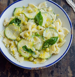 Nước sốt đơn giản nhưng ngon tuyệt với bí ngồi, tỏi, lá húng tây, vỏ chanh kết hợp cùng với đậu Hà Lan chính là những nguyên liệu của món ăn xuân này. Bạn chỉ mất 10 phút cho phần sốt, sau đó thưởng thức cùng với mì Ý hình nơ dễ thương. Thêm một chút phomai parmesan bào vụn, bạn sẽ có một món ăn hương vị mùa xuân nhẹ nhàng!