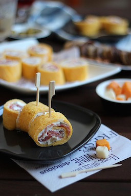 Cuối tuần là dịp bạn thường mời bạn bè, người thân tới nhà cùng ăn uống, sum họp. Để làm mới thực đơn cho cả nhà, bạn có thể thực hiện món trứng cuộn cá hồi kem tươi này. Thời gian chế biến ngắn, màu sắc của món ăn rất hấp dẫn nổi bật màu vàng của trứng, xen lẫn màu đỏ của cá hồi, màu xanh của dưa leo và màu trắng của kem tươi. Món trứng cuộn này có thể ăn khai vị kèm với bánh mì hoặc chỉ dùng một mình nó cũng rất ngon và vừa miệng.