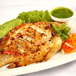 Cá hường tẩm nướng rau củ và sa tế (Nên dùng hay không: Nên)